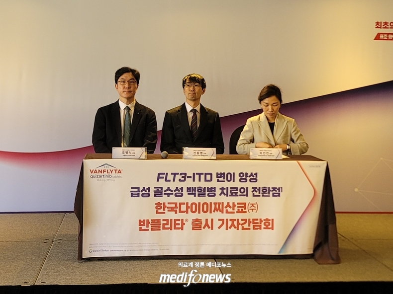 한국다이이찌산쿄 항암제사업부 이선진 상무는 “반플리타의 출시는 높은 재발 부담에도 불구하고 치료 옵션이 제한적이었던 AML 환자들이 유도요법부터 유지요법까지 치료 전 과정에 걸쳐 생존 혜택이 입증된 새로운 옵션을 갖게 됐다는 점에서 큰 의미를 갖는다. 한국다이이찌산쿄는 혁신적인 치료제를 통해 의학적 미충족 요구를 해소하고, 한국 의료진과 긴밀히 협력해 더 많은 환자들이 더 나은 치료를 받을 수 있도록 지속적인 노력을 이어가겠다”고 전했다.