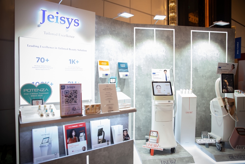 제이시스메디칼은 이번 학술대회에서 자사의 주력 제품인 고주파(RF) 의료기기 ‘덴서티(DENSITY)’와 초음파(HIFU) 의료기기인 ‘리니어지(LinearZ)’를 전면에 배치해 참관객들의 시선을 사로잡았다. 특히 실버 컬러와 모던한 톤으로 설계된 전시 부스는 현장에서 세련된 브랜드 이미지를 각인시키는 데 기여했다.