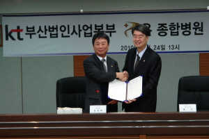 부산 온 종합병원(병원장 정근)은 지난 24일 KT부산법인사업본부(본부장 김천택)와 건강증진 협력병원 협약을 체결했다. 정근 병원장은 “KT부산법인사업본부와의 협력병원 협약 체결을 계기로 다양한 지역 유관기관과의 협력을 전개해 건강한 지역사회를 만드는데 더욱 힘쓸 것”이라고 밝혔다.