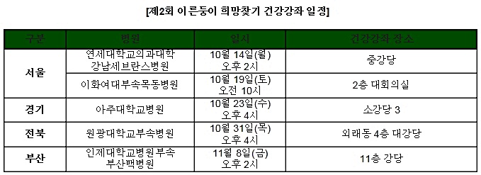 이번 건강강좌는 ‘이른둥이 건강 관리’를 주제로 영양관리, 성장발달, 예방접종, 영유아 지원사업 등에 대한 정보를 전달할 예정이며, 이른둥이에 대한 질의응답 시간도 가질 예정이다.