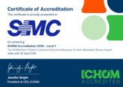 삼성서울병원 암병원은 국내 최초로 아이촘 (ICHOM) 인증을 획득했다고 7일 밝혔다. 아이촘은 환자 중심 가치 기반 의료(Value-Based Healthcare)를 실현하기 위한 국제 표준을 제시하는 비영리 기구다. 환자에게 중요한 임상적 결과와 삶의 질 결과를 정의하고, 이를 표준화된 ‘환자 중심 결과 측정 세트(Standard Sets)’로 개발·보급하여 의료 시스템을 ‘치료 과정’ 중심에서 ‘환자 결과’ 중심으로 전환하도록 지원하고 있다. 현재까지 48개 세트가 만들어져 60개 이상 나라 500여 기관이 사용 중이라고 알려져 있다.삼성서울병원 암병원은 이번에 유방암(Non-Metastatic Breast Cancer)에서 아이촘 1단계 (Level 1) 인증을 받았다. 아이촘 인증은 총 3단계로, 1단계는 아이촘이 제시하는 표준 세트인 환자의 임상 결과 지표(Clinician Reported Outcomes, CRO)와 환자자기평가결과(Patient-Reported Outcomes, PRO)지표의 50%를 제대로 측정하고 관리되는 지를 본다. 이번 인증으로 삼성서울병원 암병원은 유방암 분야에서 PRO 관련 활동이 국제 표준에 따라 체계적으로 측정,
