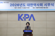 대한약사회(회장 권영희)는 5일, 대한약사회관 4층 강당에서 대한약사회 및 유관기관 임직원이 함께한 가운데 2026년도 시무식을 진행했다. 권영희 회장은 인사말을 통해 “백절불굴(百折不屈), 어떤 어려움에도 꺾이지 않는 기개로 약업 현장의 질서를 흔드는 비정상적이고 불법적인 행태를 바로잡고 한약사 문제 해결과 성분명 처방 제도화를 위해 끝까지 가겠습니다.”고 밝혔다. 권 회장은 또 “모든 과업을 현실로 만드는 힘은 바로 여러분의 손끝에서 시작된다”며, “여러분의 고충과 아픔을 먼저 살피고 움직이며 여러분의 든든한 창과 방패가 되겠습니다.”고 임직원을 격려했다. 이어 서울 및 경기도지부장, 유관단체장의 인사말이 이어졌으며. 시무식에 이어 권영희 회장을 비롯한 참석 임원들은 온라인으로 2026년 약사회원신고를 진행했다. 이날 시무식에는 김위학 서울지부장, 연제덕 경기지부장, 김종환 약사공론 사장, 유상준 약학정보원 원장, 김대진 의약품정책연구소 소장, 이모세 환자안전약물관리본부장과 대한약사회 부회장 및 상근임원 등이 자리를 함께했다.