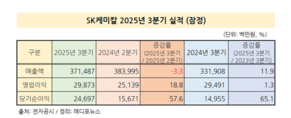 SK케미칼(대표이사 사장: 안재현)은 연결 재무제표 기준 3분기 매출액 6099억원, 영업이익 151억원의 실적을 거뒀다고 5일 공시했다. SK케미칼 주력 사업의 안정화 및 자회사 SK바이오사이언스의 실적 개선을 통해 매출은 전년 대비 43.1% 상승했고, 영업이익은 전년 동기 및 전분기 대비 흑자 전환했다. 별도 기준으로는 매출 3715억원, 영업이익 299억원을 기록해 전년 동기 대비 매출 11.9%, 영업이익 1.3% 증가했다. Pharma 사업부에서는 기넥신, 조인스 등 주요 제품 판매가 늘었고, 그린케미칼 사업부는 코폴리에스터 등 스페셜티 제품을 중심으로 안정적인 수익 구조를 강화하며 실적 성장을 견인했다. SK케미칼 관계자는 “글로벌 경기 둔화에도 불구하고 자회사 실적 개선과 고부가가치 제품 판매 확대, 운영 효율화로 실적 개선이 이뤄졌다”며 “향후에도 주력 사업의 경쟁력을 강화하고 순환 재활용을 비롯한 중장기 성장 기반을 확고히 할 계획”이라고 말했다.