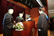 관동대학교 의과대학은 13일 2008학년도 학위수여식과 제9회 히포크라테스 선서식을 관동의대 명지병원 대강당 상근홀에서 가졌다.관동대 전체 학위수여식은 오는 2월20일 강릉에서 실시되지만 이에 앞서 거행된 의과대학 학위수여식에서는 모두 50명의 의학과 학생이 졸업했는데, 특히 이번 졸업생 50명 전원이 의사국가고시에 합격한 학생들이어서 그 의의를 더했다.한동관 총장과 연동수 학장, 김재욱 명지병원장, 장준호 의대 동창회장, 교수 및 학부모, 선후배 등 내외 귀빈 3백여 명이 참석한 가운데 진행된 학위수여식은 전선배 의대 교학행정팀장의 사회로 이종석 명지병원 원목실장의 설교와 기도, 구민성 교학부장의 설립정신 낭독 및 학사보고 등의 순으로 진행됐다.또한 생애를 인류봉사에 바칠 것을 엄숙히 서약하는 아홉 번째 히포크라테스 선서식도 가졌으며 참가자 전원의 교가 합창과 축도로 마무리됐다.한동관 총장은 “의사란 동서고금을 막론하고 ‘아픈 사람들’에게 한 평생 헌신적인 봉사를 베풀어야 하며, 새로운 의학지식을 습득하기 위해 부지런히 공부해야 하는 천직을 갖고 태어난 것을 기쁜 마음으로 받아드려야 한다”고 말했다.이어 “의사의 사명을 다해 선을 행하는 참다운 의사의 직분