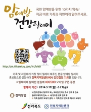 전북대학교병원(병원장 정성후)이 제7회 암예방의 날(3월 21일)을 맞아 도민들에게 암의 예방의 중요성을 알리기 위한 ‘건강릴레이’를 실시한다고 밝혔다. 모바일 참여로만 진행되는 이번 건강릴레이는 17일부터 21일까지 진행되며 이벤트 홈페이지( http://m.ilikerelay.com/15fvND) 에 접속해 카카오톡 친구들에게 전송시켜주면 된다. 홈페이지에는 국민 암예방을 위한 10가지 약속 등을 담은 암예방 수칙과 암과 관련 건강정보, 암예방의 날 기념 행사와 관련된 내용이 담겨 있어 암에 대한 바른 이해를 통해 도민들의 건강증진 향상에 큰 도움이 될 것으로 기대되고 있다. 참여방법은 내 핸드폰에서 QR코드 또는 모바일 인터넷 주소를 입력 한 후 접속해 릴레이 페이지에 접속한다. 내 핸드폰 번호를 입력한 후 카톡 릴레이 보내기를 클릭해 카톡 친구 선택 후 메시지를 보내면 된다.릴레이에 가장 많이 참여한 자에게는 암예방 릴레이 홍보왕으로 선정해 전북지역암센터에서 건강검진 기회를 준다. 또한 릴레이에 참여해 준 500명에게는 비타500 모바일 쿠폰도 지급한다.전북대병원은 이와 함께 전북지역암센터 주최로 암예방의 날인 21일 오전 11시 전북대병원 교수연구동