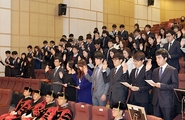 고려대학교 의과대학 및 의학전문대학원(학장겸원장 김효명)은 지난 2월 28일(금) 오후1시 의과대학 본관 2층 유광사홀에서 ‘2014학년도 고려대학교 의학전문대학원 입학식 및 의학과 진입식'을 거행했다. 이 날 행사에는 새내기 의학전문대학원생 53명과 의학과 진입생 53명 김우경 의무부총장, 김효명 의학전문대학원장, 김정묵 의과대학 교우회장을 비롯한 내외귀빈 및 학무모 등 200여명이 참석해 입학을 축하했다.이날 행사는 ▲개식선언 ▲국민의례 ▲내외빈소개 ▲환영사(김효명 의과대학장겸의학전문대학원장) ▲축사(김우경 의무부총장) ▲축사(김정묵 의대교우회장) ▲입학선서(신입생대표) ▲교가제창 ▲폐식 순으로 진행됐다. 김우경 의무부총장은 축사를 통해 “앞으로의 4년은 여러분들에게 지금보다 훨씬 더 어려운 도전의 시간이 될 수도 있다. 비록 길고도 힘든 여정일 수도 있지만, 바로 이러한 인내를 통하여 얻은 삶에 대한 철학과 인류에 대한 사랑, 배려와 나눔의 정신은 앞으로 여러분이 걸어야 할 ‘진정한 의사’로의 길을 걸어갈 수 있게 해 줄 것이다”고 말했다.김효명 의대학장 환영사에서 “진정한 고대인이자 진정한 의료인이 된다는 것은 최고의 실력과 창의적 역량 이외에도,
