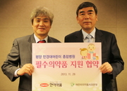 한미약품(대표이사 이관순)이 어린이의약품지원본부(이사장 홍경표, 이하 지원본부)를 통해 북한 어린이 치료에 필요한 기초 의약품을 정기적으로 기증한다. 한미약품과 지원본부는 지난 28일 한미약품 본사 17층에서 이관순 대표이사, 홍경표 이사장 등 관계자들이 참석한 가운데 '평양 만경대어린이종합병원 의약품 기증 협약'을 체결했다고 29일 밝혔다.협약에 따라 한미약품은 연간 약 6000만원 규모의 필수의약품을 분기별로 지원본부를 통해 기증하며 이 약은 통일부 승인을 거쳐 빠르면 내년 1월 만경대어린이종합병원으로 보내질 예정이다. 만경대어린이종합병원은 지원본부가 북측과 협약을 맺고 2009년 4월 평양 만경대 구역에 완공한 어린이 전문병원으로 소아과, 산부인과 등 11개 진료과로 운영되고 있다.협약식에서 홍경표 이사장은 "지원본부가 올해로 16년째 대북 보건의료 사업을 추진하는 동안 한미약품이 31억 상당의 의약품을 기증했다"며 "이번 협약이 질병으로 고통 받는 북한 어린이들의 건강개선에 크게 기여할 것으로 본다"고 말했다.이관순 사장은 "한미약품은 재난지역이나 빈곤국가에 대한 의약품 지원사업을 꾸준히 진행해 왔는데, 같은 민족인 북한 어린이들의 건강 개선을 지속적