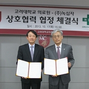 고려대의료원(의무부총장 김린)과 녹십자(대표 이병건)가 상호협력 협정을 체결했다.지난 17일(목) 오후 3시 의료원 본부회의실에서 김린 의무부총장, 박정율 의무기획처장, 송진원 연구교학처장, 녹십자 이병건 대표이사, 녹십자 허은철 부사장 등 관계자 들이 참석한 가운데 상호협력 협정 체결식을 진행했다.양 기관의 대표는 협약서에 서명 후 참석자들과 함게 고대의대 BSL-3센터, 실용해부학센터, 실험동물연구센터 등의 주요연구센터를 둘러봤다. 이번 협약에서 양 기관은 ▲신약개발 분야 공동연구 및 학술행사 실시 ▲ 비임상시험 및 임상시험 협력 ▲ 학술자료 및 정보, 출판물의 교류 등의 업무에서 상호협력 하기로 했다. 김린 의무부총장은 인사말을 통해 “생명공학산업을 선도하여 온 녹십자와 상호협력을 맺게 되어 매우 기쁘다”며 “임상 및 학술연구 분야에서의 상호협력을 통해 양 기관의 발전과 긍정적인 성과를 기대한다”라고 말했다.이에, 녹십자 이병건 대표이사는 “고려대의료원과 협약체결을 통해 형식적인 것이 아닌 실질적이고 발전적인 협약이 되기를 희망한다”며 “제약 및 기타 생명공학 분야를 선도할 수 있는 혁신적 연구 결과를 고려대의료원과 함께 만들어 나가길 기원한다”고 화답