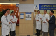 경희의료원(의료원장 임영진)은 지난 7일(월), 오후 4시30분 본관1층에서 고객상담센터 현판식 겸 2013 CS슬로건/실천운동 선포식을 진행했다. 이번 행사는 QI팀/고객상담센터 현관에서 박영국 경희대치과병원장, 최도영 경희대한방병원장 등 교직원 100여명이 참석한 가운데 진행됐다.지난 9월 2일부터 업무에 들어간 고객상담센터는 환자/보호자의 오프라인 민원창구 역할을 하게 된다. 고객 동선을 최우선으로 배려해 병원 내 가장 중심부에 설치한 것이 특징이다. 임영진 의료원장(사진)은 “고객들의 제안과 칭찬은 많을수록, 불만불편 등은 적을수록 좋은 병원, 환자가 만족하고 행복한 병원, 환자가 찾아오는 병원이 되지 않을까 하는 취지에서 ‘환자가 행복한 의료, 경희의 고객가치입니다’라는 슬로건을 채택”한 것이라며 “환자와 병원이 만나는 소통의 광장이 되길 바란다다”고 말했다. 한편, CS슬로건/실천운동 및 CS배지 문구가 실린 새로운 CS포스터가 이날부터 구성원과 고객이 볼 수 있도록 병원 내 3백여 곳에 게시됐다.환자와 보호자들이 고객상담센터를 쉽게 찾아올 수 있도록 위치·전화번호를 안내하는 문구와 어느 대학병원 의사의 경험담을 담담하게 써내려간 ‘CS스토리#1.
