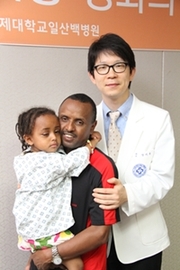 에티오피아에서 선천성 백내장을 앓고 있는 3살배기 여아(Melikite Eyouel)가 인제대학교 일산백병원의 지원으로 백내장 수술을 받고 건강을 회복해 눈길을 끌고 있다. 8일 일산백병원 따르면 안과 장지웅 교수가 에티오피아 의료봉사 현장에서 선천성 백내장으로 시력을 잃은 에요우엘(여/3)을 만났으나, 현지 의료시설로는 수술이 불가능해 지원단체와 연결하여 환아와 보호자를 한국으로 초청, 6월 23일 인천공항을 통해 입국 후 바로 일산백병원에 입원하여 수술을 받고 새 빛을 찾았다. 수술을 집도한 장지웅 교수는 “에티오피아 의료봉사에서 만난 이 아기는 선천선 백내장으로 양쪽 시력을 모두 잃은 상태로 현지에서는 간단한 장비밖에 준비되지 않아 수술이 불가능해 이들의 딱한 형편이 마음에 걸려 한국으로 초청하여 수술하게 됐다”며 “이번 수술로 어둠속에서 고통 받는 환아에게 희망의 새 빛을 선물할 수 있게 되어 너무 기쁘고 되찾은 빛으로 마음껏 뛰어 놀며 밝은 세상만 보기를 바란다”고 말했다. 3번에 걸친 수술을 꿋꿋이 이겨내고 초롱한 눈망울을 회복한 에요우엘양의 아버지는 벅찬 감정에 감사의 말을 잇지 못하며 “우리아기에게 새 빛을 찾아 준 일산백병원에 감사한다”고 소