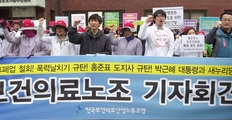 상세검색진주의료원 사태와 관련 보건의료노조(이하 보건노조) 노조원들이 청와대까지 진출했다.보건노조 노조원들은 16일 12시 여의도 새누리당 당사 앞에서 기자회견을 개최한 데 이어 이날 오후 3시에는 청와대 근처인 청운동사무소 앞에서 시위를 펼치며 진주의료원 폐업결정 철회에 박근혜 대통령이 직접 나설 것을 촉구했다.보건노조는 이날 저녁 7시에는 광화문에서 촛불집회를 개최할 예정이다.