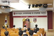 고려대의료원(의무부총장 김린)은 2일 오전 8시에 안암병원 8층 대회의실을 비롯한 각 병원에서 ‘2013년 계사년(癸巳年) 시무식’을 거행했다.고려대 안암․ 구로․ 안산병원에서 각각 진행된 새해 시무식은 김린 의무부총장, 한희철 의과대학장, 박승하 안암병원장, 김우경 구로병원장, 이상우 안산병원장 등을 비롯한 총 1000여명의 교직원들이 참석해 2013년 고려대의료원의 발전과 도약을 다짐했다. 신년사를 통해 김린 의무부총장은 “고려대의료원은 당면한 우선 과제들을 올해에도 굳은 의지를 가지고 추진해 나가고자 한다”며 “우선 올해 600억원 규모의 과감한 투자 계획을 마련했는데 전 구성원들과의 소통과 단합을 바탕으로 우리의 미래 발전추진 계획을 차질없이 진행할 수 있도록 전 교직원의 마음을 모아달라” 고 강조했다. 박승하 안암병원장은 신년사를 통해 “2013년 외형상의 성장뿐만 아니라 의료의 본질인 질적 향상을 통한 최고의 병원, 진료 분야별 베스트 병원을 추구해 나가겠다”며 “진료관련 프로세스를 환자 중심병원으로 개편하고 대학부속병원 본연의 역할일 중증질환 진료를 지향하며 특성화 센터 중심으로 진료체계를 개편하겠다”고 말했다. 또 “숙원사