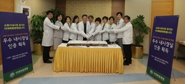 이대목동병원은 최근 대한소화기내시경연구재단이 시행하는 우수내시경실 인증평가에서 소화기내시경실과 건강증진센터 내시경실이 우수내시경 인증을 획득하고 이를 기념해 소화기내시경실 앞에서 11월 1일 오전 떡케익 커팅식을 개최했다.이번 기념식에는 김광호 이대목동병원장을 비롯해 주요 보직자가 참가했다.우수내시경실 인증 평가는 해당 내시경실이 대한소화기내시경학회가 권장하는 질 관리와 연관된 지침을 잘 지키고 양질의 의료를 행하고 있다는 것을 학회가 보증하는 제도로 3년 간 유효하며 이후 재인증을 받아야 한다. 우수내시경실 인증을 통과하기 위해서는 ▲내시경 의사의 자격 ▲시설 및 장비 ▲과정 ▲성과지표 ▲감염 및 소독 등 총 다섯 가지 항목에 대한 평가를 거쳐야 한다.이대목동병원은 다섯 가지 항목에서 모두 우수 평가를 받아 이번 우수내시경실 인증을 획득했다.특히 이대목동병원 내시경실은 내시경 전문의가 식도, 위장, 소장 및 대장질환의 진단을 위한 일반적인 내시경 검사뿐만 아니라, 정확한 진단과 병기 판정을 위해 초음파내시경, 확대내시경 검사 등의 진단내시경을 시행하고 있다.아울러 치료내시경으로 대장 용종 절제술과 조기 위암 및 조기 대장암에 대한 내시경적 점막절제술을 시행