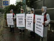 30일 폭우가 빗발치는 가운데 의사회관 앞에서 건강보험공단 노조가 피켓시위를 펼치자, 이에 맞서 의협 직원들도 피켓시위로 맞서 때아닌 양단체 직원들간 시위대립 양상이 펼쳐졌다.이날 오후 건보공단 노조원들은 “허위광고 주범 노환규를 구속하라”는 등 강력한 어조로 의사협회를 규탄했다. 또 오늘 3시를 기해 검찰에 노환규 회장을 고발할 것이라고 밝혔다.앞서 건강보험공단 노조는 “의사협회장 노환규의 ‘오토바이 질주 광란 ’을 응징할 것이다”라며 의협과의 전쟁을 선포한 바 있다.이어서 “대한의사협회장 노환규와 그 추종세력이 불법탈법 광고와 주장으로 벌이고 있는 공단과 노동조합 죽이기에 대해 최대한 자제하고 인내했다. 하지만 계속되는 악랄한 도발을 ‘노동조합에 대한 전쟁선포’로 간주하고 이제 전면적 대응을 취할 것”이라고 밝혔다. 공단노조의 시위가 계속되자 이에 질세라 의협 관계자들도 피켓을 들고 나와 대응시위를 펼쳐 눈길을 끌었다.의협 총무팀 직원들이라고 밝힌 관계자들은 자발적인 참여임을 강조하며 건강보험공단에 대해 “방만한 경영을 중지할 것”, “건강보험료를 환자의 치료에 제대로 쓸 것”, “국민의 돈을 낭비하는 부끄러운 일이다”라는 등 강한어조로 규탄했다.