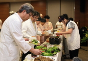 이화대의료원, 국내 첫 대표적 프로그램으로 자리 잡아이화여자대학교 의료원(의료원장: 서현숙)이 국내 대학병원 최초로 운영해온 ‘희망텃밭’ 교실이 암 환우를 위한 대표적 정서 체험 프로그램으로 자리를 잡았다. 의료원은 10일 희망텃밭에 참여한 암 환우들과 이대여성암전문병원 김승철 부인종양센터장, 문병인 유방암•갑상선암센터장, 주 웅 부인종양센터 교수 등 의료진과 생태 텃밭 전문가인 박정자 강사가 참석한 가운데 이대목동병원 2층 대강당에서 제3기 희망텃밭 봄 농사 종강파티를 개최했다. 이화여자대학교 의료원이 2011년부터 여성암 환우들의 정서적 치료를 돕기 위해 봄과 가을 매년 2회 운영 중인 ‘희망텃밭’ 교실은 병원 내에 있는 텃밭에서 암 환우가 직접 유기농 채소를 키우고 수확해 봄으로써 성취감을 느끼고 삶에 대한 열정을 다시 찾을 수 있도록 돕기 위한 정서 체험 프로그램이다. 이번 종강 파티는 암 환우들이 텃밭에서 직접 수확한 채소와 과일들로 다양한 음식을 만들어 암 치료 과정에서 도움을 준 의료진들에게 제공하며 화기애애한 분위기 속에서 진행돼 암 환우들이 성취의 기쁨과 보람을 느낀 뜻 깊은 행사였다. 사진1: 김승철 이대여성암전문병원 부인종양센터