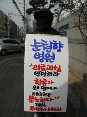 순천향대병원이 자국 대사 부인이 병원 측 과실로 인해 사망에 이르렀다며 1인 시위를 벌이고 있는 주한 태국인 때문에 곤혹을 치르고 있다.태국공동체는 보름 전부터 병원 앞에서 '순천향병원 의료과실 인정하라, 한류가 왠 말이냐, 태국 국민 분노한다, 정부는 특별 감사하라'는 내용의 피켓을 들고 1인 시위를 벌이고 있다.이들은 지난해 9월 순천향대병원에서 태국 대사 부인이 사망한 이유가 의료사고라고 주장하고 있는 것.이에 순천향대병원은 이를 제재할 방법이 없어 골머리를 앓고 있다.순천향대병원 관계자는 “1인 시위는 경찰에 신고하더라도 법적으로 제재할 방법이 없다”면서 “빨리 경찰 조사 결과가 나와야 한다”고 토로했다.이어 “태국공동체의 1인 시위는 병원을 압박하는 행동”이라면서 “태국 대사 부인 사망으로 도의적인 책임을 느끼지만 의료사고는 인정할 수 없다”고 단호하게 말했다.진료절차 상의 문제였지 의료사고는 절대 아니라는 것이다.태국 대사 부인 사망 사건은 현재 경찰조사 마무리 단계에 있다. 사건을 맡고 있는 서울용산경찰서 관계자는 “의협에 부검 결과에 대해 검토를 요청했으나 ‘추가적인 검토가 필요하다’는 답변이 와 재검토를 요청해 놓은 상태”라며 “이달 말 검토