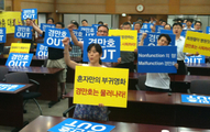 경만호 회장의 직무집행정지를 사법부에 신청해야 한다는 의견이 나왔다.전국의사총연합(대표 노환규)는 28일 오전 7시부터 의사협회 회관 3층 동아홀에서 '경만호 회장 퇴진 및 비상대책위원회 구성 촉구'하는 비상 총회 및 토론회를 개최했다.전의총 회원들 전부는 경만호 회장의 퇴진과 비상대책위원회 구성을 촉구했다.A 회원은 "노환규 대표의 단식을 중단하는 의결을 해야 한다"며 "노대표의 건강이 상당히 좋지 않다"고 단식 중단의 이유를 설명했다.B 회원은 "노 대표가 단식한 목표가 사라졌다"며 "경만호 회장이 출근하지 않고 도망다니고 있어 상대가 없어졌다"고 경만호 회장을 비난했다.C 회원은 "이번 임시총회에서는 노환규 대표 단식 중단 권고안과 경만호 회장 퇴진 및 비대위 구성을 촉구하는 결의안을 채택해야 한다"고 강조했다.이번 토론회에서는 적법절차에 따라 경 회장을 퇴진시키야 한다는 목소리도 나왔다.즉, 임시대의원회 총회를 개최해 대의원들이 경 회장을 사퇴시켜야 한다는 것이다또 다른 회원은 "경 회장 사퇴를 요구하면서 왜 직무집행정지를 사법부에 신청하지 않나"라면서 "소송건이 몇개인데 계속 회장직에 그대로 두고 있는가"라고 피력했다.