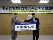 영남대학교 의과대학3회 동기회원(회장 정필재 영동안과의원장) 100여 명은 최근모교인 영남의대를 방문해 발전기금 1억1000만원을 전달했다.