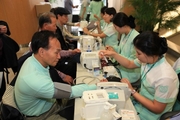 서울대학교병원 간호사들은 지난 4일 천사의 날(1004 Day)를 맞아 오전 10시부터 오후 3시까지 본원 1층 로비에서 ‘온 몸이 쑤시나요?’라는 주제로 봉사활동을 가졌다.병원간호사회의 협찬으로 진행된 이 날 봉사활동에서는 병원을 방문한 환자 보호자들을 대상으로 관절과 근육을 위한 체조 동영상을 상영하고 관절염 안내 책자를 배부했다. 또한 무료로 혈당 및 혈압을 측정해 주고 상담을 진행 후 필요시 외래안내를 받도록 도왔다.