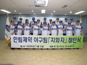 한림제약(대표 김재윤)은 7월 3일 사내 강당에서 임직원으로 구성된 사회인야구단 “지화자”팀을 창단했다고 7일 밝혔다.회사측에 따르면, 10여명이 이미 사회인야구 등 야구에 경험이 있으며, 나머지 20여명은 이번에 야구를 처음 접해보는 초보자지만, 한림제약 야구단 팀명처럼 야구 자체보다는 사내 직원간의 화합 및 단결이 주 목적인 만큼 승부보다는 모임 자체에 더 큰 의미를 두고 있다.또한, 야구라는 운동의 특성상 익숙하지 않은 경우 부상 등의 위험이 있는 운동이라 토요일을 이용해 4시간 이상씩 진행되는 강훈 속에서도 모두 불평 없이 훈련을 소화 하고 있다고 회사측은 설명했다.감독 최석신 과장은“이제 시작한 만큼 실력은 부족할지 모르나, 선수들 열정만큼은 어느 누구 못지않다”며,“7월중 계획하고 있는 자체 청백전에서 주전자리를 꿰차기 위한 물밑 경쟁이 치열하다.”고 말했다.영업부 윤정욱 팀장 역시 “서로 얼굴만 알았던 타 사업부 직원과 소통하게 되어 기쁘다.” 면서 “야구를 통해 한주동안 쌓인 스트레스를 풀고, 무엇보다 친목강화로, 직원간의 다양한 업무 노하우를 공유하는 등의 교류도 더욱 활발해 질것으로 기대한다.”고 희망을 밝혔다. 또한 그는 “요즘 들어 더욱