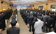 대한의사협회 제36대 집행부가 5월 1일 제1차 상임이사회 및 경만호 신임회장의 취임식을 시작으로 공식 출범했다.이날 오전 9시 경만호 회장을 비롯한 상임이사진, 의사협회 사무처 직원 등 100여명이 참석한 가운데 의협 동아홀에서 열린 취임식에서 의협 새 집행부는 의료수급구조 개혁과 회원 권익 옹호를 위해 3년 임기 동안 혼신의 노력을 다할 것을 굳게 다짐했다.취임식 인사말을 통해 경만호 신임회장은 “의료계 현실이 그 어느 때보다도 어려운 가운데 10만 의사의 대표가 되어 어깨가 무겁고 회원들의 기대가 매우 크다”면서 “큰 일을 이뤄내기 위해 임직원 모두가 힘을 합쳐 의료계를 살리는 데 최선을 다하자”고 말했다.경 회장은 “사무처 직원들이 활력을 갖고 창의력을 펼치며 신바람나게 일할 수 있도록 집행부가 이끌겠다”며 직원들 스스로 각고의 노력을 당부했다.회무운영과 관련해 경 회장은 “이사들 중심으로 돌아가겠지만 과거의 수직적인 관계에서 일방적인 명령체계 하에 일하기보다는, 서로가 긴밀한 협력관계 속에서 일을 해나가고, 스스로 아끼고 사랑하는 분위기를 만들어나가자”고 강조했다.이어 “36대 집행부가 성공한 집행부로 임기를 다 마쳤을 때 박수받고 떠날 수 있으려면