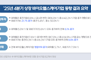 한국바이오협회는 ‘2025년 4분기 및 연간 상장 바이오헬스케어기업 동향조사’ 결과를 27일 발표했다. 이번 조사는 한국거래소(KRX) 산업지수 中 바이오헬스케어 부문에 포함된 82개 공시기업 대상 ‘25년 12월 사업보고서를 기반으로 수행했으며, 분야별(의약품·의료기기) 및 기업규모별(대·중견·중소)로 구분해 ▲인력 ▲연구개발비 ▲매출 ▲재무상태 등을 종합 분석했다. 동 조사를 통해 바이오헬스케어 산업의 전반적인 경영 상황 및 특징을 파악해 향후 기업 지원방안 모색을 위한 기초자료로 활용할 계획이다. ‘25년 4분기 바이오헬스케어기업의 매출은 전년동기 대비 6.1% 증가한 것으로 나타났다. 분야별로는 의약품 5.0%, 의료기기 15.6% 증가하며 전반적인 성장 흐름을 유지했다. 매출 구성은 내수가 10.6% 증가하며 전체 매출 성장을 견인한 반면, 수출은 0.03% 소폭 감소하며 성장 기여도가 제한적인 것으로 나타났다. 이러한 수출감소 흐름은 의약품 분야에서 대기업 중심의 수출 감소 영향이 작용한 결과로 파악된다. 재무구조 측면에서 성장성(매출액 증가율)은 전년동기 대비 약 14.6%p 축소(‘24.4Q, 19.2% → ’25.4Q, 4.6%) 되며 전반적